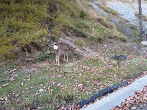 車を置いてから宿泊棟に向かっていたら、鹿がのんびりと草を食んでいた。