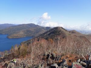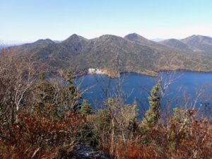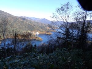 しばらく登ると然別湖が見下ろせるようになってきた。