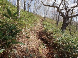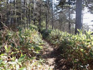 このあと来た道を引き返すか、東雲湖(しののめこ)に下りるか迷ったが、まだ昼前なので東雲湖に向かうことにした。
