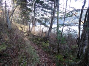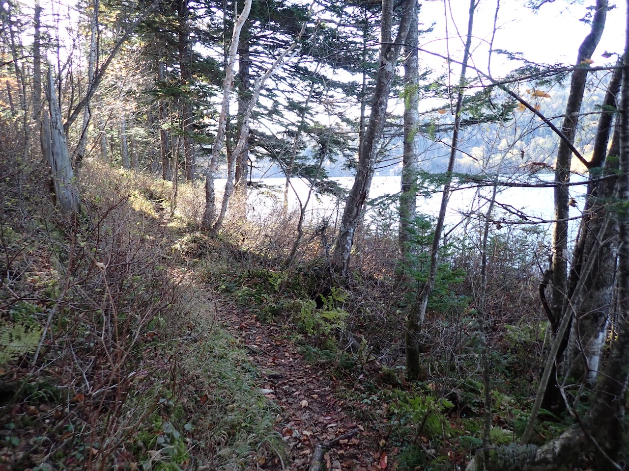 東雲湖は北海道三大秘湖の一つとか。他はオコタンペ湖とオンネトー。湖岸までうっすら踏み跡があるが、これはパス。