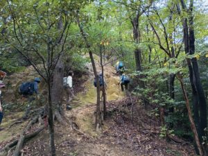 雨上がりなので結構いやらしい。ロープや鎖はない。