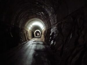 狭いトンネルだがトンネルを抜けた先は行き止まりなので、車で通るのは夏焼集落目的の人くらいしかいない。トンネルは短いのと長いのと2つある。