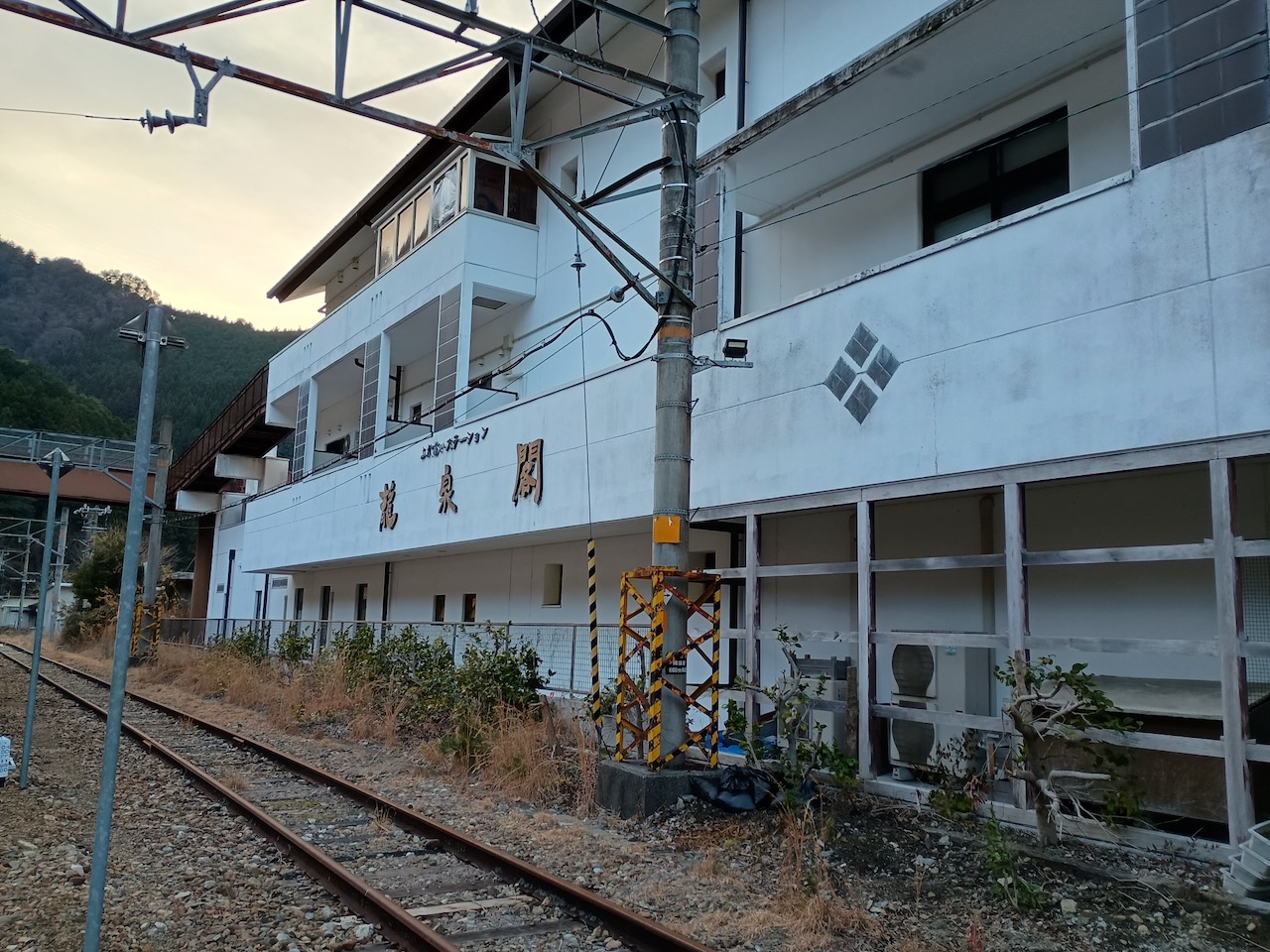 宿は平岡駅の駅舎を兼ねた龍泉閣。
