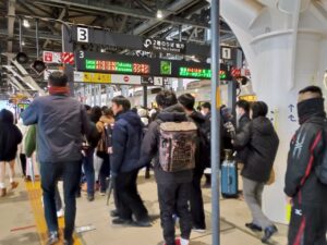 幸い、これまで列車の遅延はなく、このあとも予定通りの運行だそうだが、サンダーバードが湖西線強風のために米原経由になり、京都着が30分ほど遅れると案内されていた。