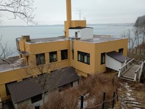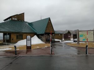 少し行くと右手にアイカップ自然史博物館。ただし冬季閉鎖中。