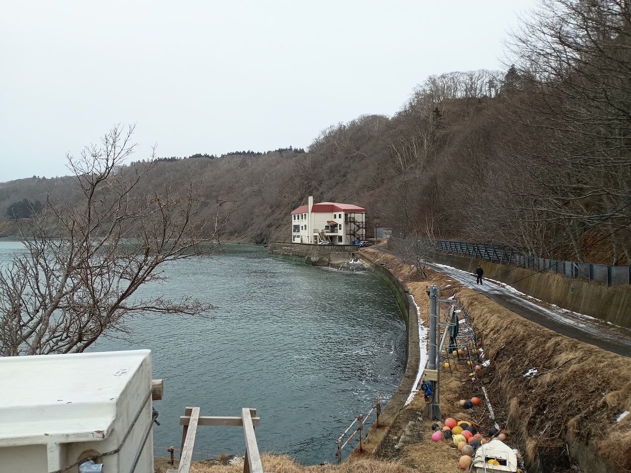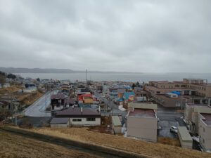 建物の向こう側からは厚岸湖が見下ろせる。
