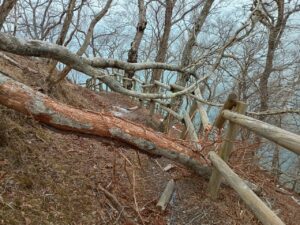 戻ってきたら反対方向へ踏み跡があった。道標は朽ちている。
